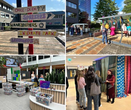 Net als onze studenten, heeft ieder zijn eigen leerstijl. Daar waren de verschillende zones op ingericht. Zo leert de een beter bij een inspiratiesessie, de ander door hands-on aan de slag te gaan in een van de praktische workshops of door met collega’s in gesprek te gaan bij de chillplek, hang-out of bij House of Bloom. Er was voor elk wat wils en we moedigden iedereen aan om te ontdekken wat voor hem of haar interessant was.